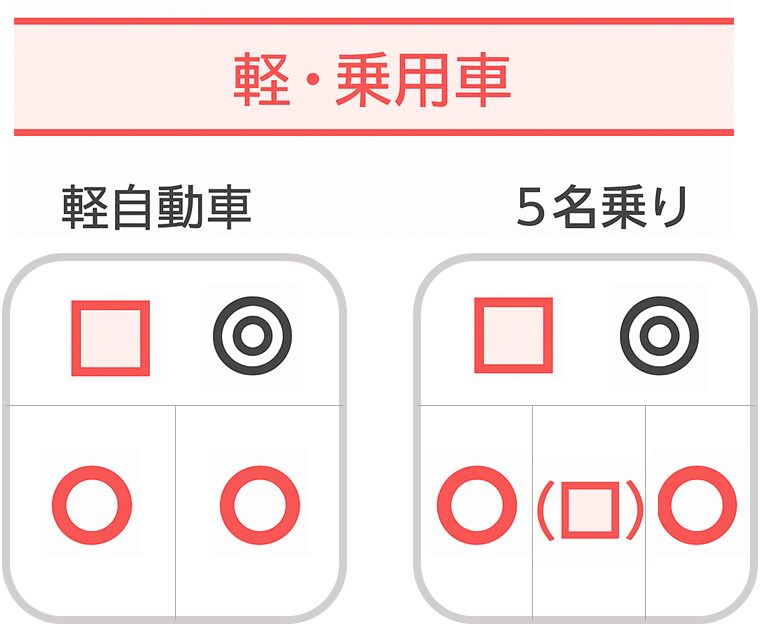 ![]() コンパクトカー 車種例:ノート、デリカD2など | 通常料金 1,500円 ハイシーズン 2,160円 | 通常料金 4,100円 ハイシーズン 5,600円 | 通常料金 5,600円 ハイシーズン 6,900円 | 通常料金 1,500円 ハイシーズン 2,160円 |
